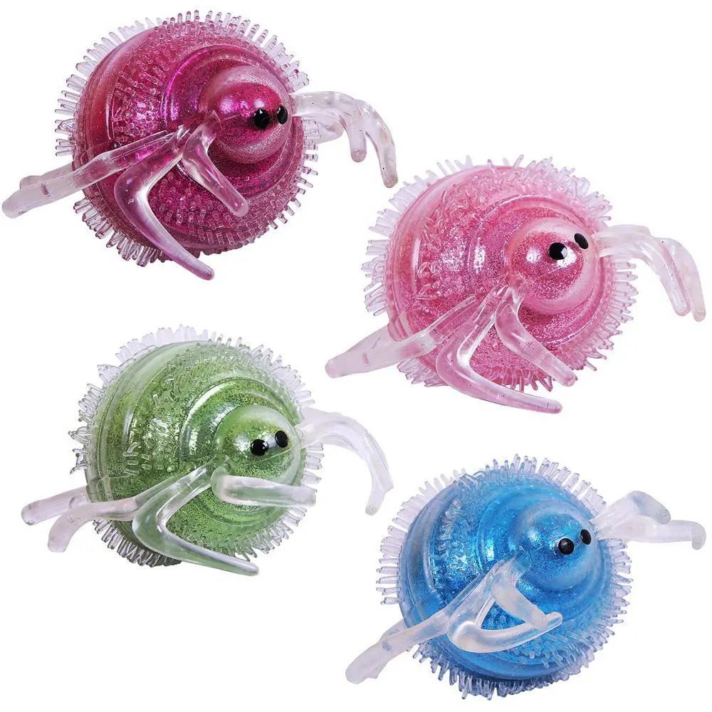 Очень необычные и яркие игрушки! Паучки сделаны из прозрачного эластичного материала и наполнены воздухом с блестящей пудрой, что заставляет их сверкать и переливаться!