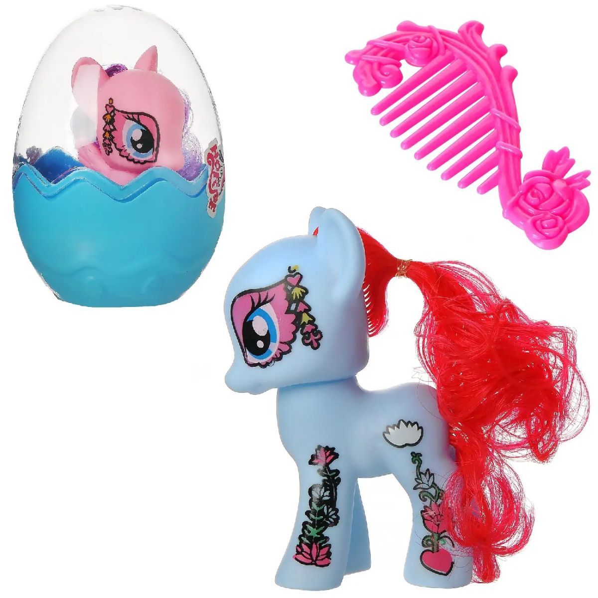 Пони Junfa голубая с расческой в яйце (с узорами)