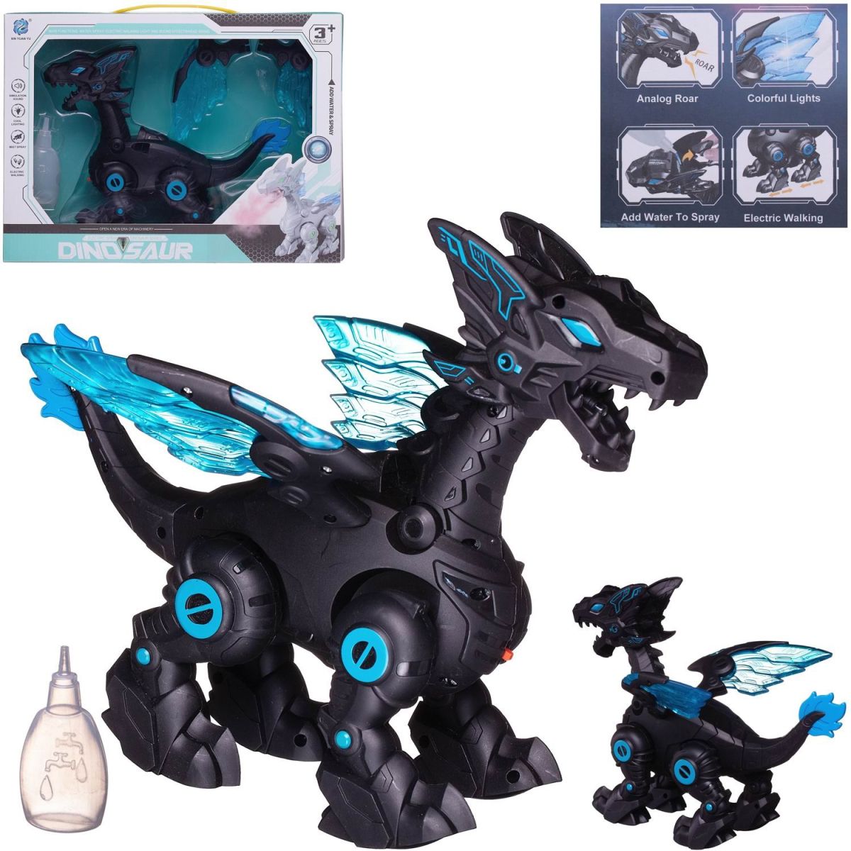 Робот Junfa Дракон Огнедышащий черный,пар,движение,свет,звук